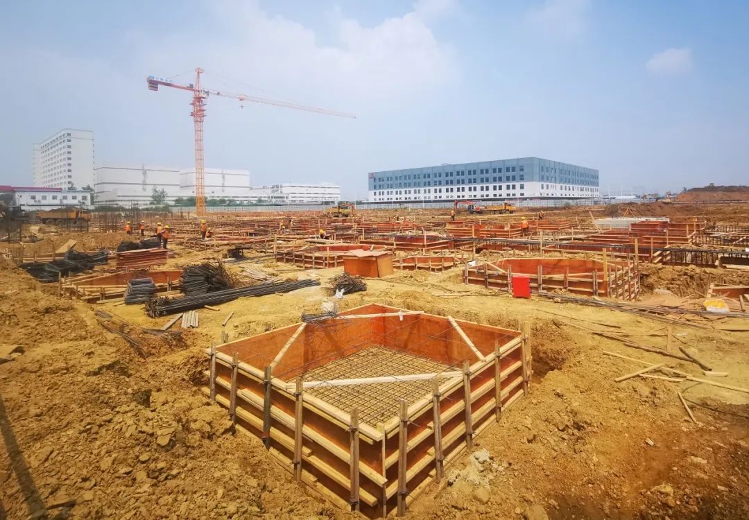 中央仓二期项目基础建设已打响百日攻坚战。目前,施工现场已完成基坑开挖824个,约占总数的73%,承台浇筑完成586个,约占总数的52%,并完成设备房主体结构封顶。按照既定计划,项目将在7月底前完成地面±0以下的全部施工工作,为后续的投产运营奠定坚实基础。