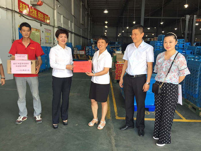 为切实保障广大员工的身体健康,防止炎热夏季高温中暑,传递公司对员工的关爱,营造良好和谐的工作氛围,集团公司工会主席尹艳红带领工会干部到物流配送等一线高温岗位,为员工们送去夏日的清凉与暖暖的慰问。